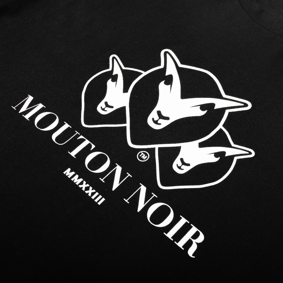 Presenting our signature timeless Mouton Noir Triple logo Classic Tee. The logo features the stylised three heads of a black sheep,
